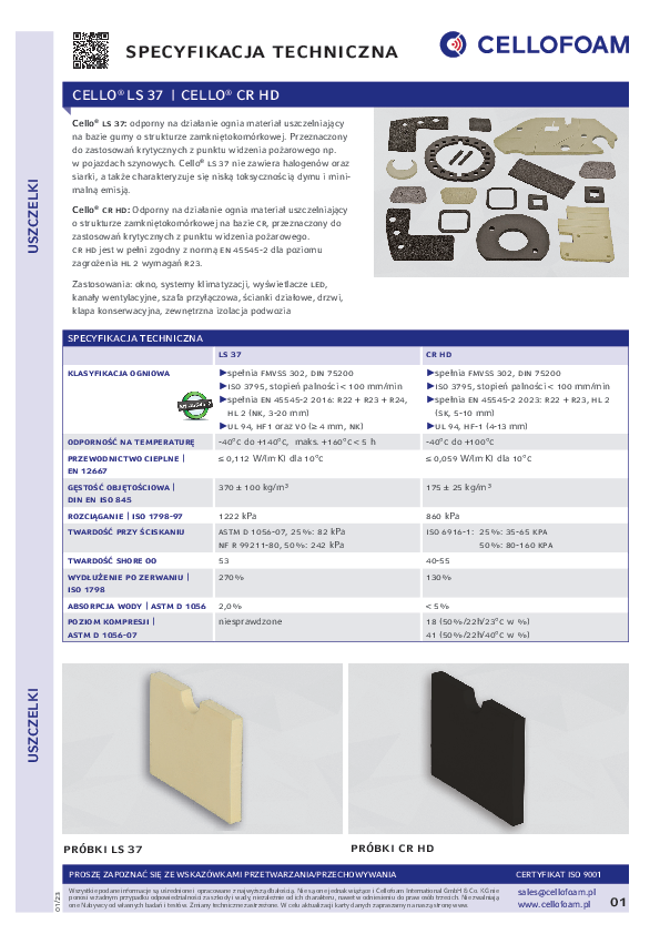 Odporny na działanie ognia materiał uszczelniający o strukturze zamkniętokomórkowej na bazie CR, przeznaczony do