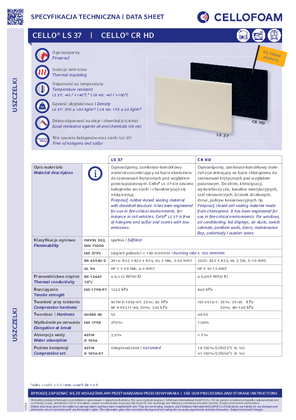 zastosowań krytycznych z punktu widzenia pożarowego. CR HD jest w pełni zgodny z normą en 45545-2 dla poziomu
